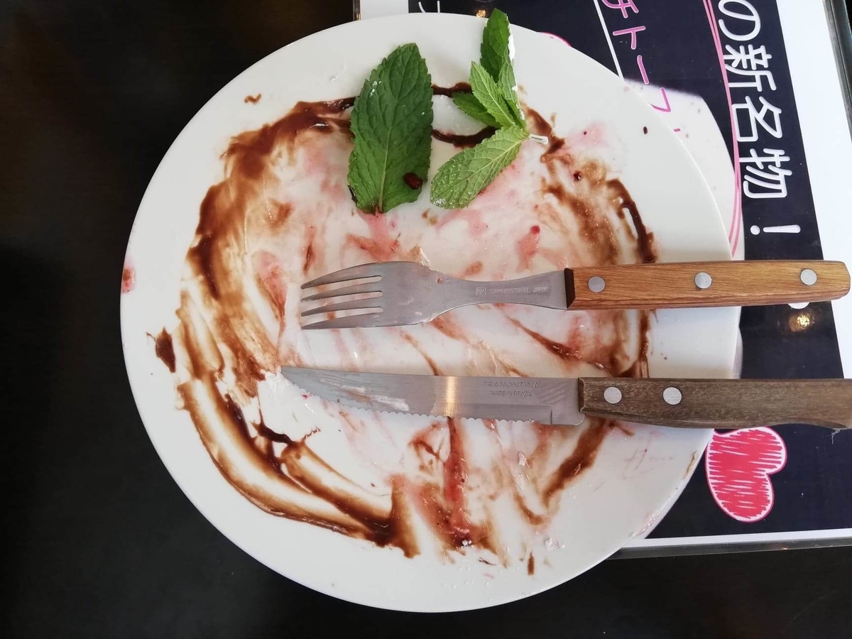 空の器の写真ミートタワーもバナナのパンケーキもキレイに完食!ごちそうさまでした!
