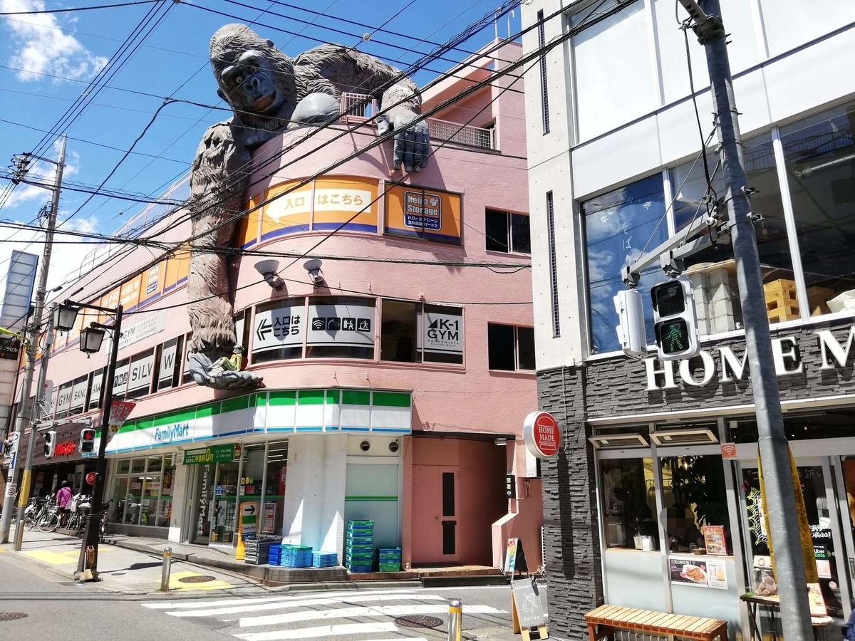 三軒茶屋『CAFE HOME MADE(カフェホームメイド)』の隣にあるゴリラ像の写真お店のすぐ隣に巨大なゴリラ像があるから。特にゴリラの肉を使っているからとかではありません。