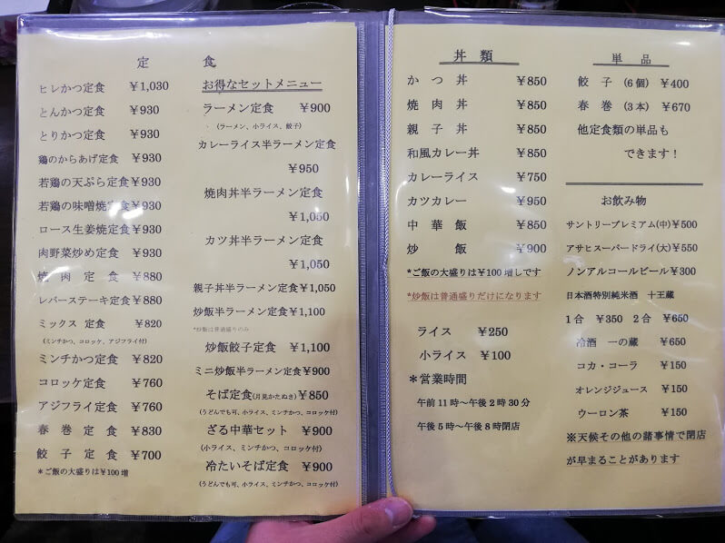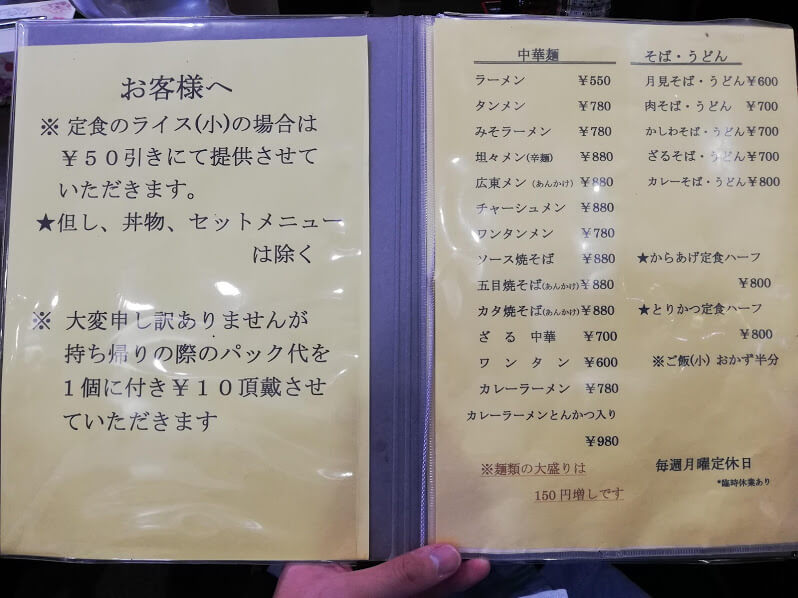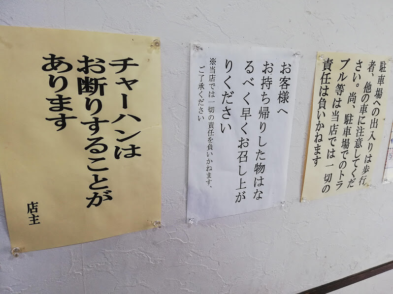 他のお客さんが注文していたのを横目にチラ見したのですが、大盛りサイズのチャーハンに普通サイズのラーメンというセットを食べている人もいました。まあまあこぼれるくらいのサイズ。なるほど、これはうっかりすると残しそうな感じ。