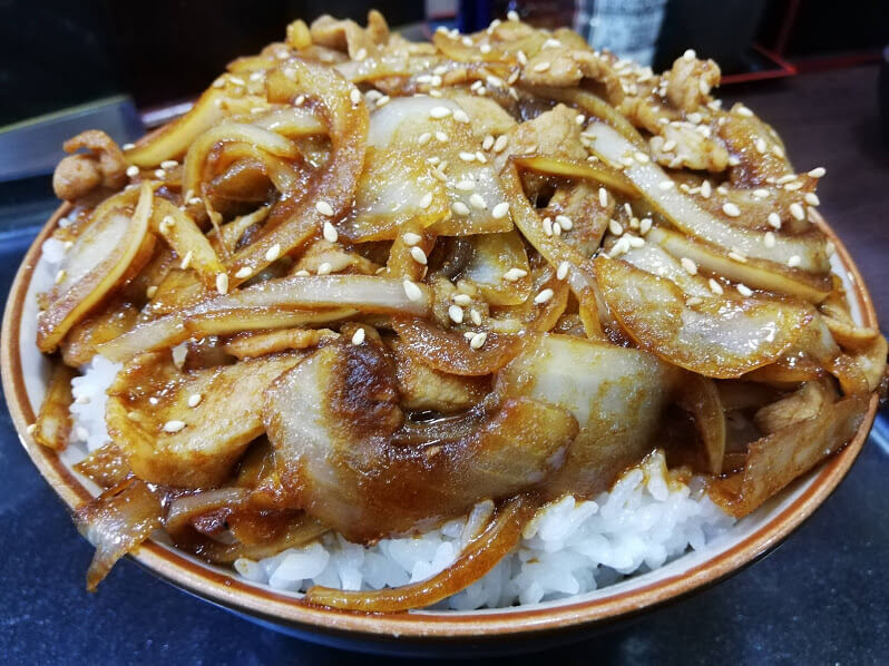 仙台『久美食堂』の焼肉丼の写真おおう……。タマネギの色が濃ゆいぜ。