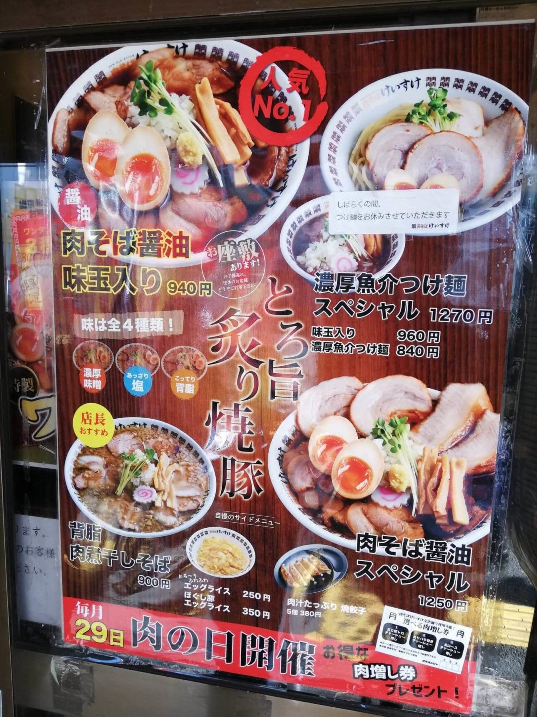 今回は肉そばスペシャルをいっちゃいましょう!店頭ポスターのチャーシューたっぷりな感じがたまりませんでした……。