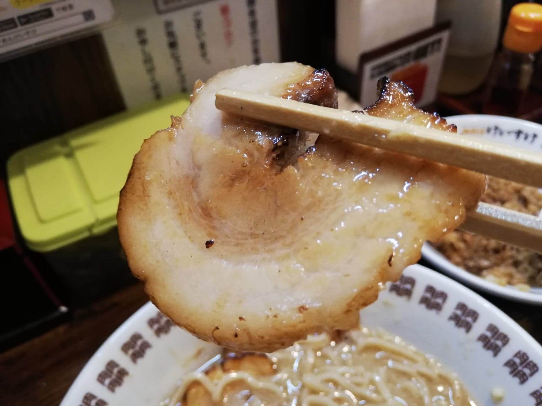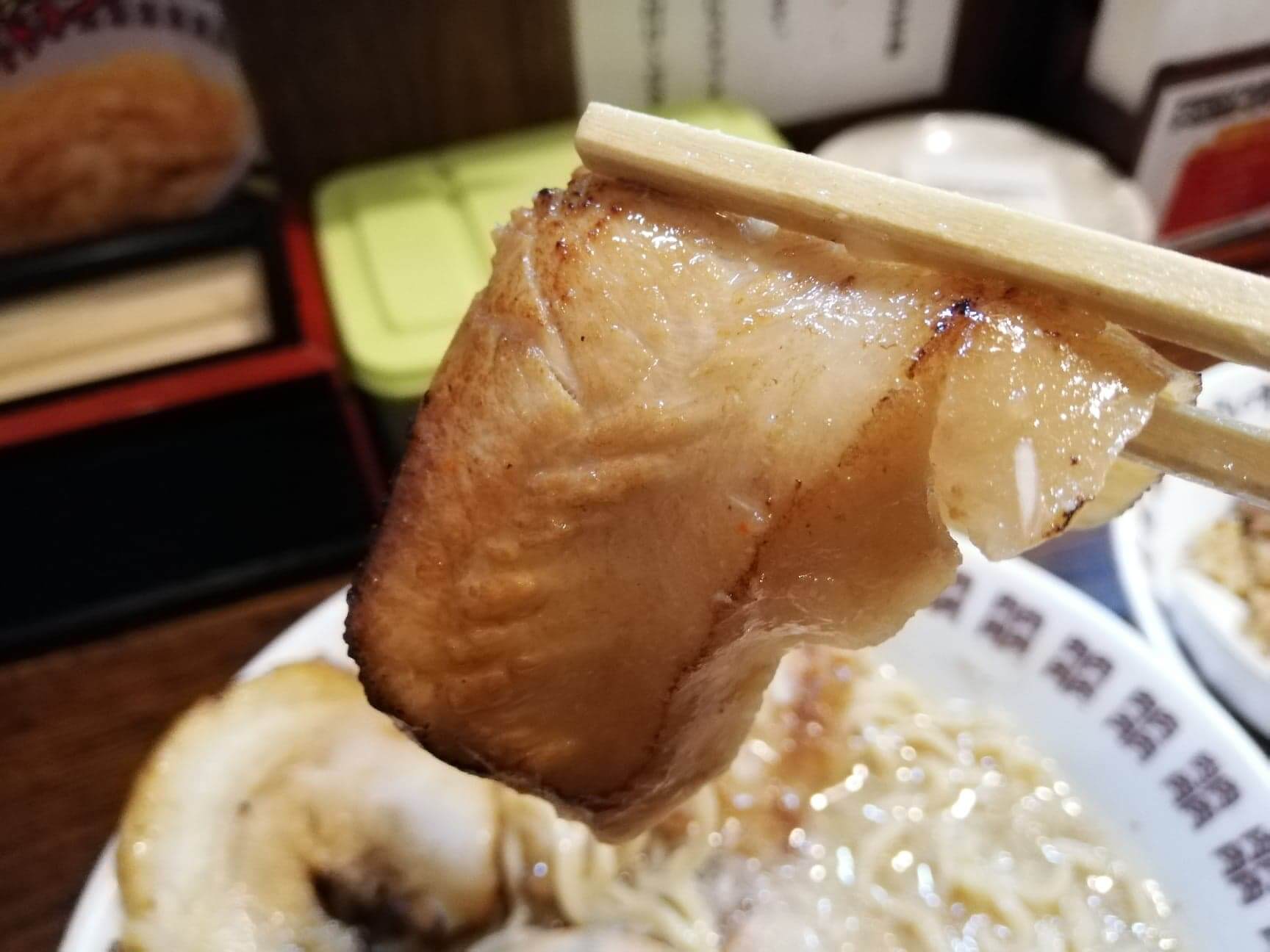 ほぼ油オンリーでゼラチンのような食感。こんなものを味噌ラーメンと一緒に何枚も食ったらやばそう感しかない。