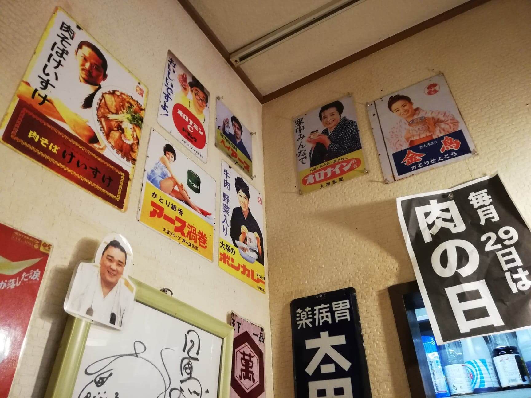 店内にはいろいろと、色紙や謎に懐かしいポスター系が飾ってあります。スゴく僕の感性に引っかかるような雰囲気……。