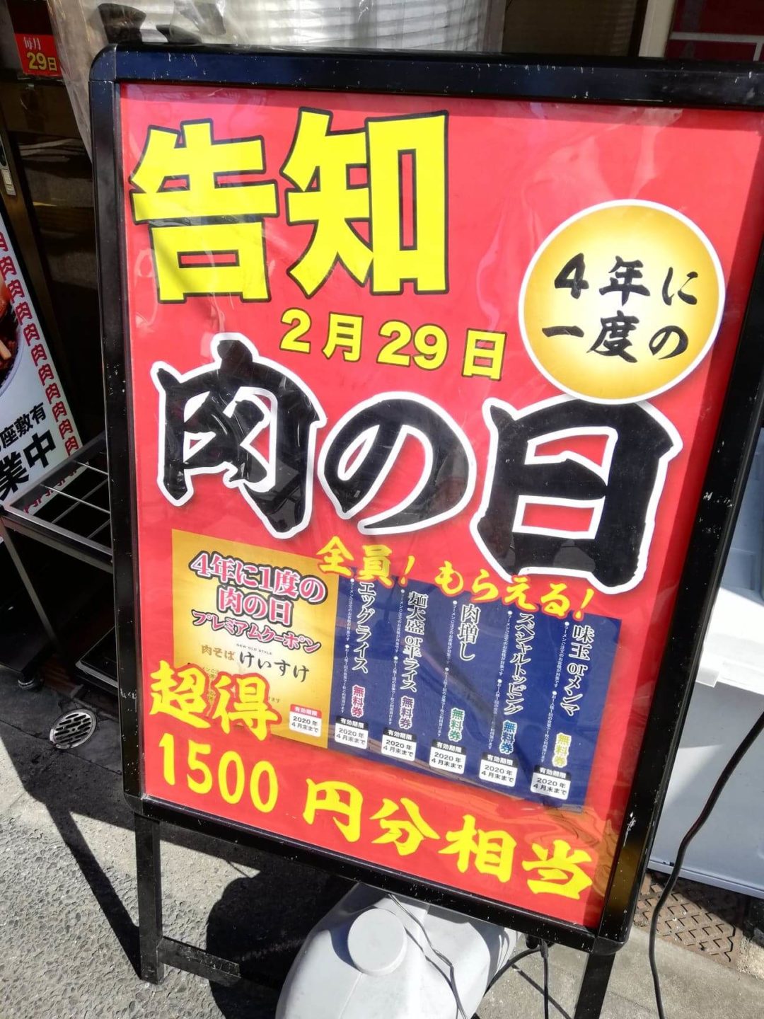 肉そばのお店にふさわしい、2月29日限定のキャンペーンを開催しますよ!