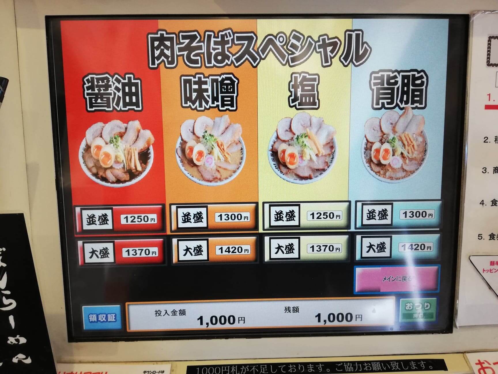 今回は『肉そばスペシャル味噌の並盛り1,300円+肉めし100円』を注文です!