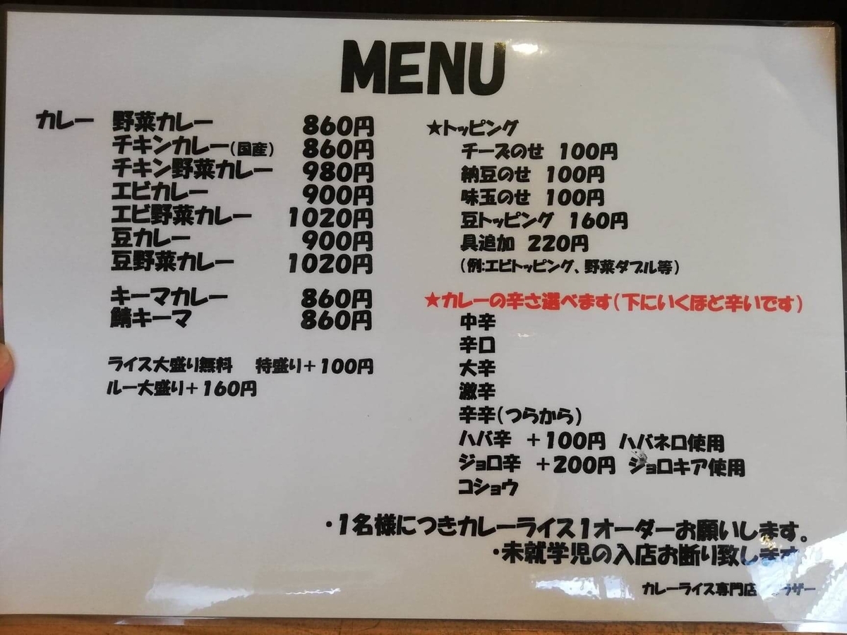 | 営業時間 | 平日➡︎11:00~15:00(L.O.14:30) 17:00~21:00 土曜➡︎11:00~15:00 *カレー完売次第営業終了 |