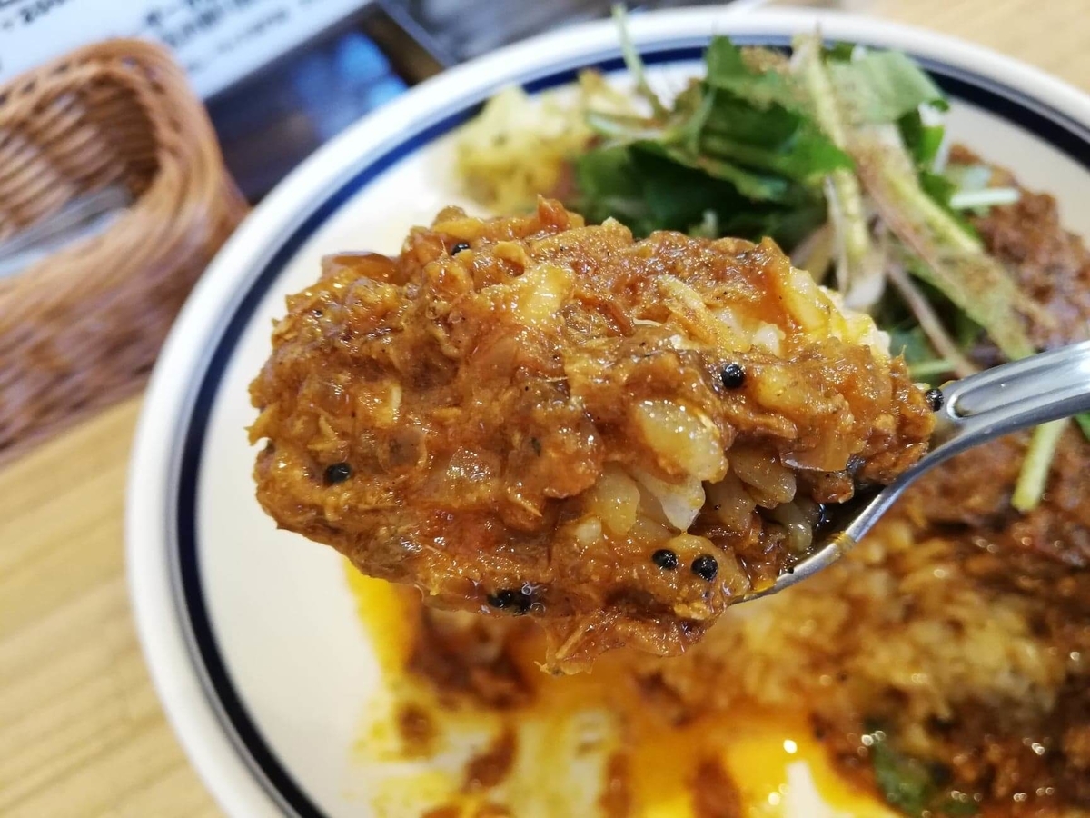 キーマカレーというと、ひき肉がコロコロっと入ってたらするイメージがあるのですがそれすらもルーと一体化するように溶け込んでいますねえ。
