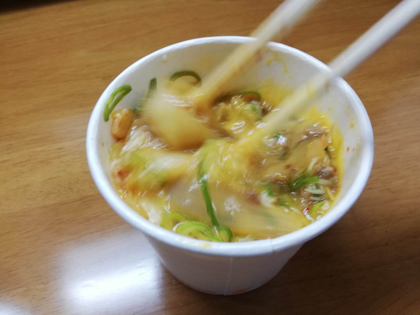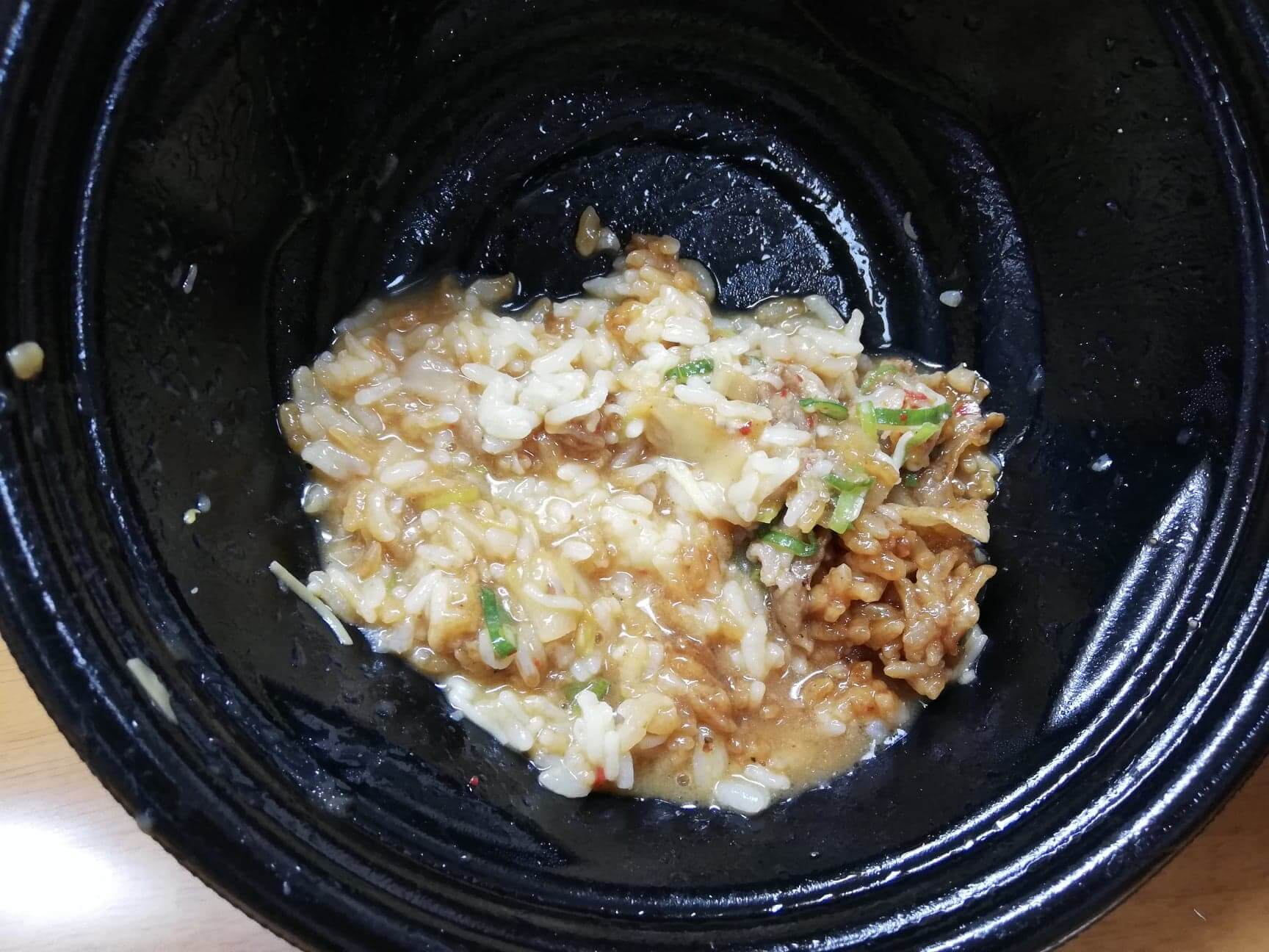 ズルズルっと一気にかきこみます!タレまみれの肉にキムチや玉子が混ざって丼のラストスパートを応援!