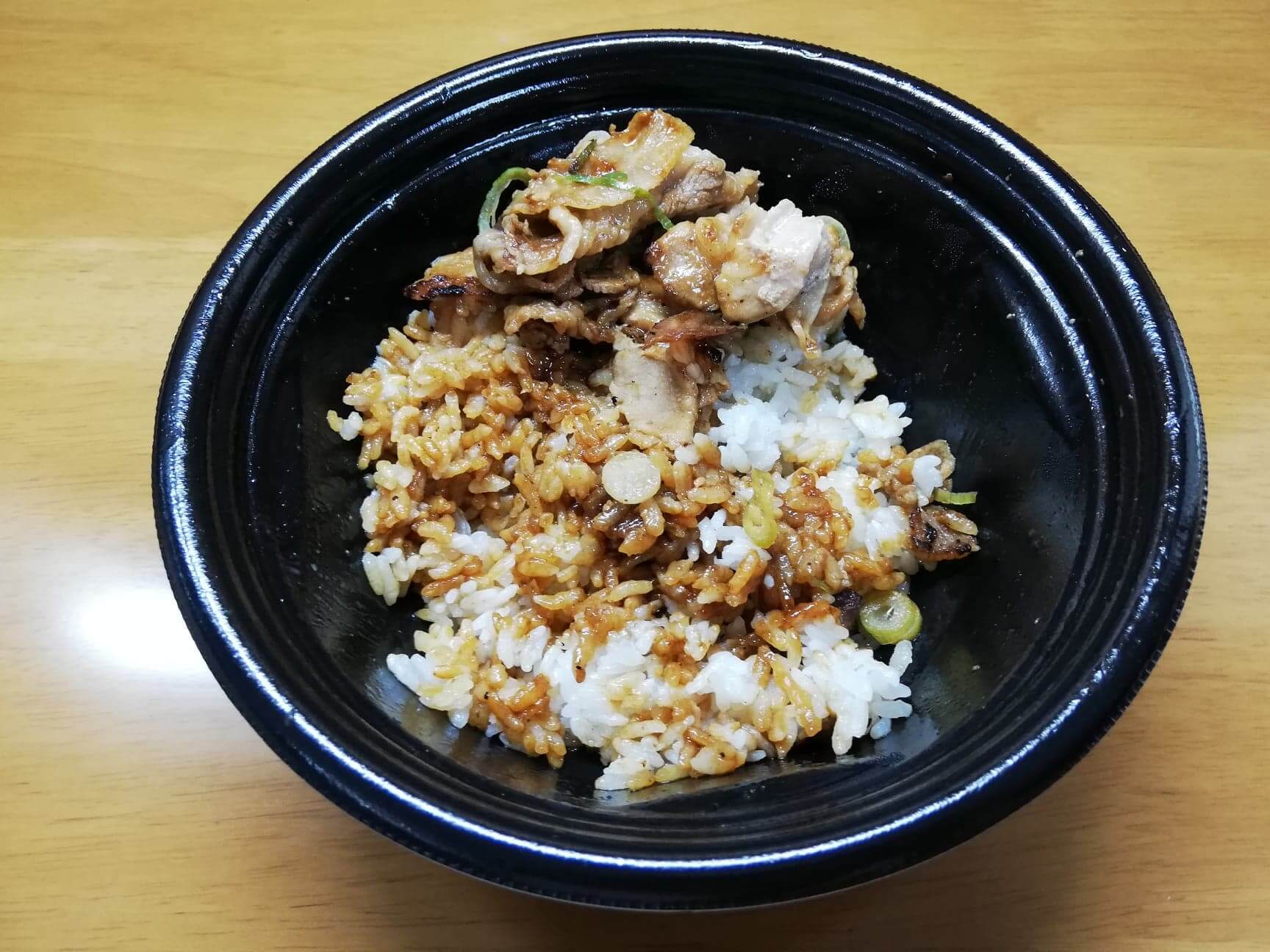 白米にもタレが染み染み!なかなかの量が入っていますが、満遍なく染み渡っていますねえ。